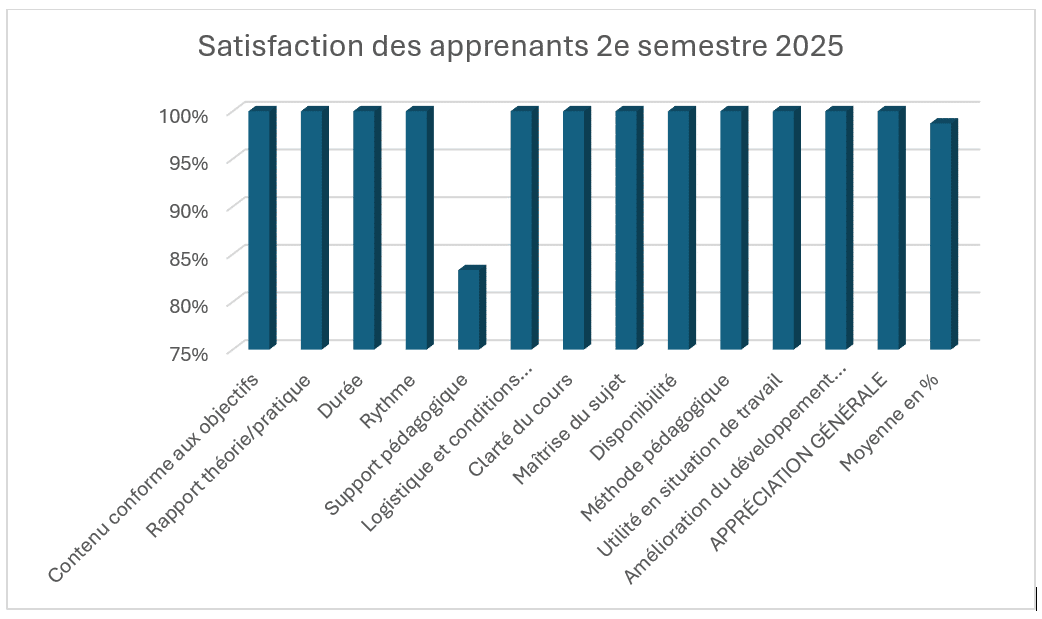 100% DE NOS CLIENTS STAGIAIRES ONT ETE SATISFAITS OU TRES SATISFAITS DE LA QUALITE DE NOS FORMATIONS